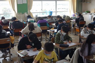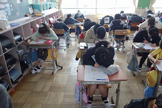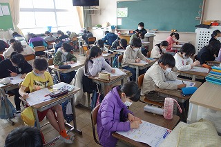 5年1組の算数は、「たしかめよう」の復習テストに取り組みました。