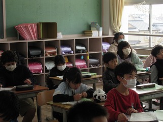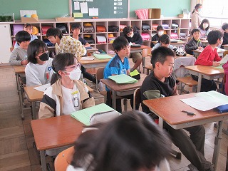 5年1組は総合の時間でした。プリントについて説明を受けて、自分の考えや思いを書き込んでいました。