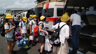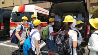 午後は、ジャンボタクシーを使って班ごとに京都市内を見学します。班ごとに見学場所や見学順が違います。みなさん、安全に気をつけて行って来てください。そして班のみんなで協力して、しっかりと見てきてくださいね。