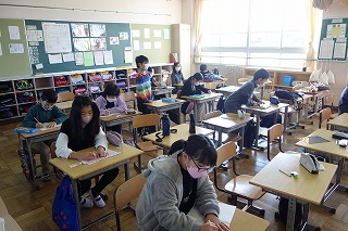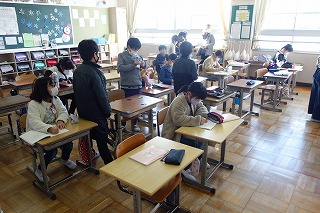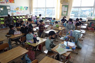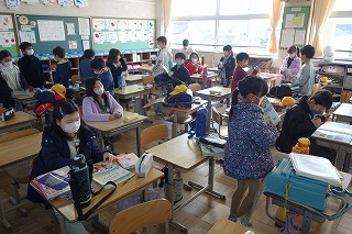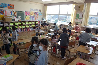 朝の教室では、みなさんが一日の仕度をしたり連絡帳を書いたりしていました。