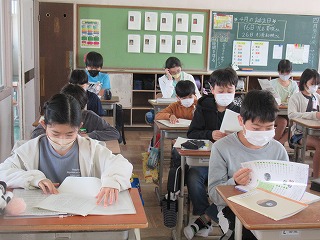 6年1組では、学年だよりが配られていました。5月もがんばりましょう。