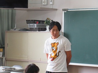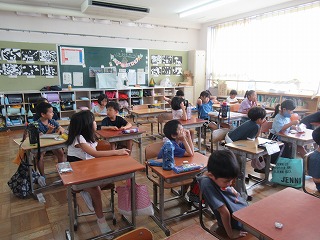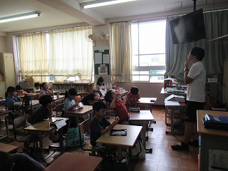 2年2組では、朝の会が行われていました。先生のお話を聞いていました。