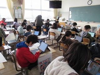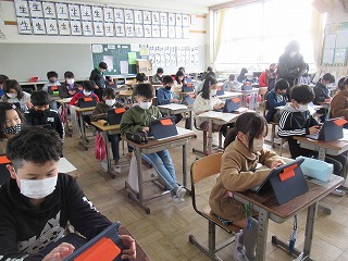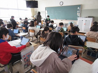 3年1組では、タブレットをつかって、学習のまとめを制作していました。みんな手慣れた様子で操作していきます。すごいですね。