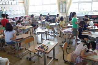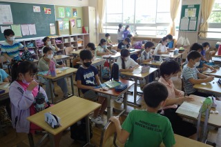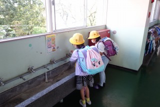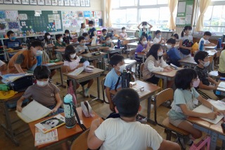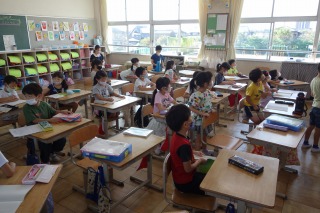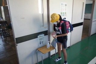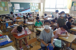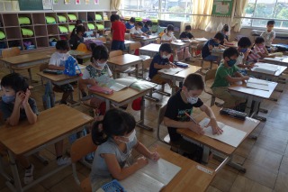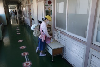 各教室では、手洗い、手指消毒を終えて教室に入った子たちが、連絡帳を書くなどの一日の用意をしていました。