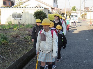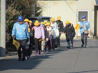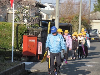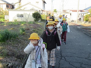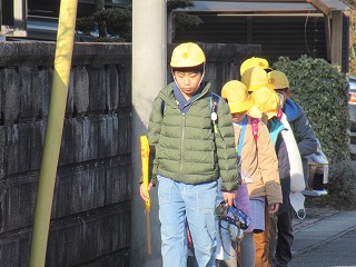 西門の通学班の登校の様子です。