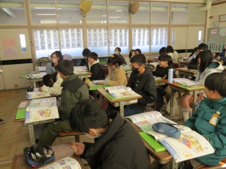 暖かい服装について学習していました。どのようなものをどのような順に切るといいか、考えていました。