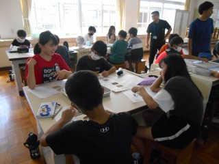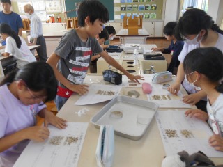実際の砂を貼り付け、地層の作りについて学習をしていました。