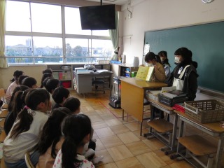 5年生の図書委員が読み聞かせをしてくれました。1年生からは、笑い声が挙がっていました。
