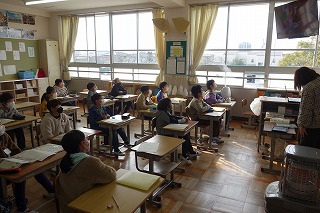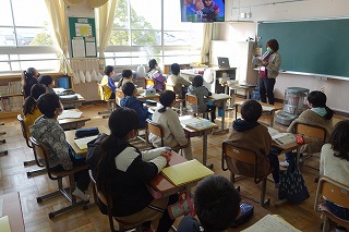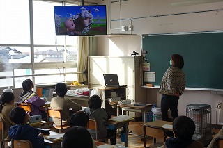 4年2組の外国語活動は、動画の歌詞のテロップを見ながら知っている動物の英単語を探しました。
