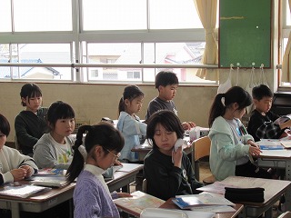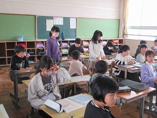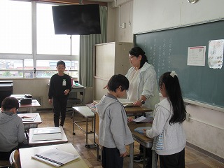 4年1組は学活の時間でした。今日の提出物を回収していました。プリントで確認しながら、出し忘れしないように注意してくださいね。