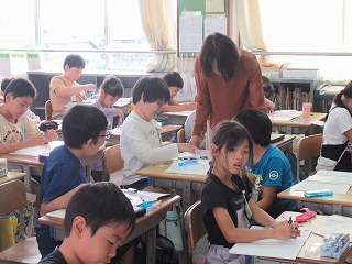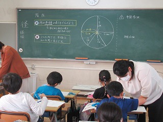 3年1組は、算数の時間でした。コンパスを使って半径が決められた円を描いていました。コンパスを使う活動は、とても楽しそうでした。