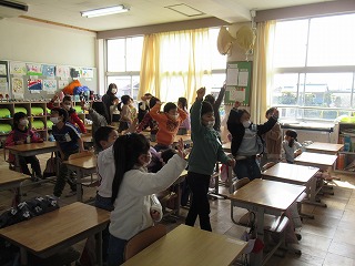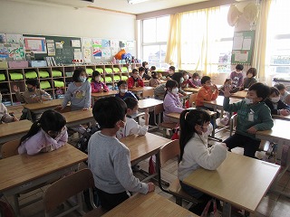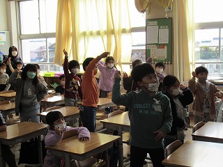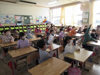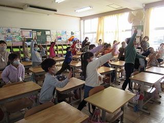 本日、1年生と2年生の教室に外国語のボランティアの先生方2名に来ていただきました。子どもたちは、ノリノリでとても楽しく活動していました。英語も自然に出てくるようになるといいですね。今日、おうちでも子どもたちに感想を聞いてみてくださいね。