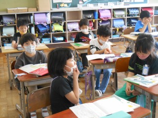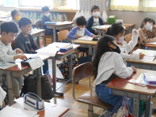 音読発表会の準備をしていました。この後、グループで話し合います。