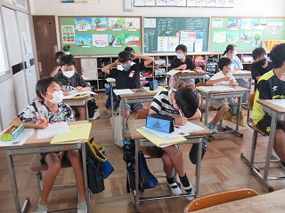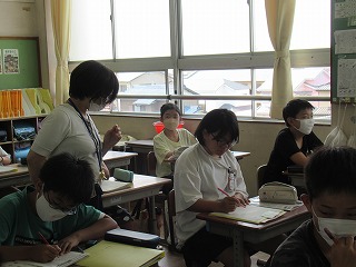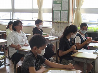 6年1組では、外国語の時間、ビンゴを行っていました。