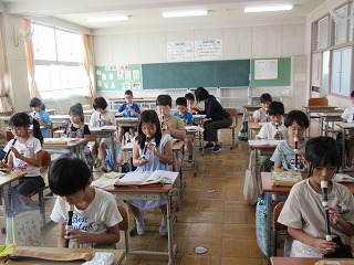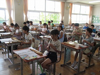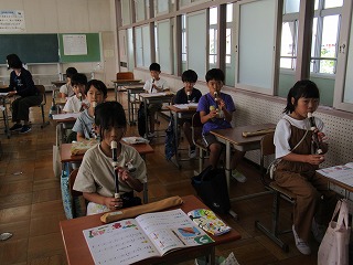 3年1組が、音楽室で音楽の授業を行っていました。リコーダーの演奏でしたが、とても美しい音色で演奏できていました。びっくりするほどのうまさでした。