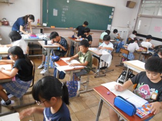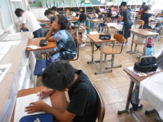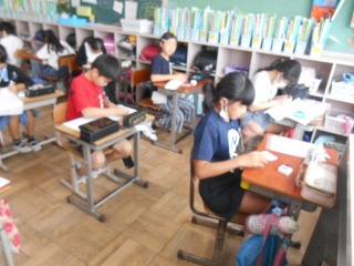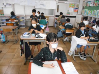 テストを行っていました。終わった子は、家庭科の刺繍の続きに取り組んでいました。