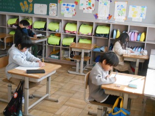 テストを行っていました。みんな真剣に取り組んでいました。