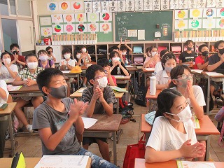 5年1組、2組では、オンラインでフットサル日本代表選手の方に、ハッピートークの一環として、インタビューをさせていただきました。石野先生のお友達で、今回、快く美和小学校のためにこの企画を引き受けてくださいました。いろいろな方のつながりに感謝、また、出会いに感謝。皆さん、これを自分の人生に生かしていってくださいね。