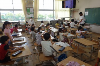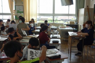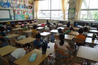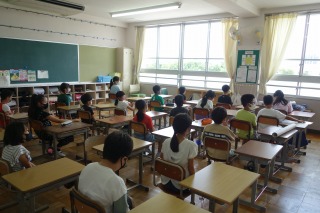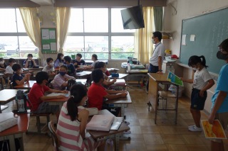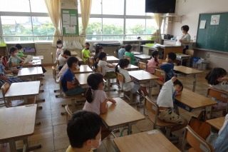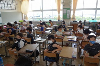各教室で朝の会が行われました。先生の話を聞いたり、ストレッチをしたり、提出物を出したりしていました。