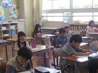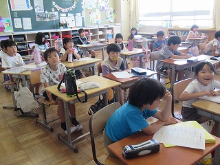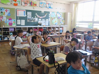 2年2組では、学活の時間、夏休みの生活について話しを聞いていました。