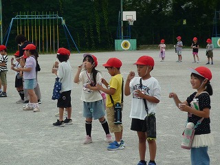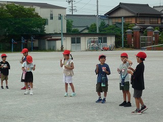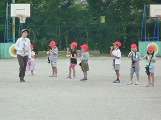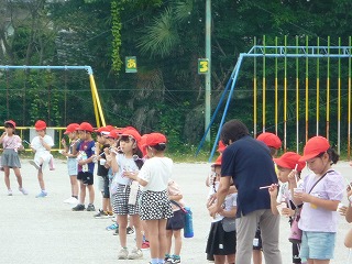 「なつのあそびをたのしもう」というテーマのもと、シャボン玉を飛ばしました。