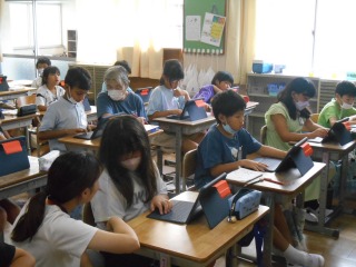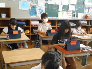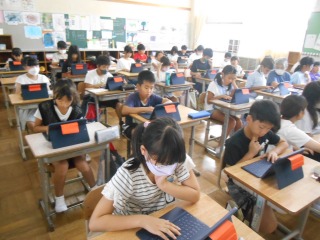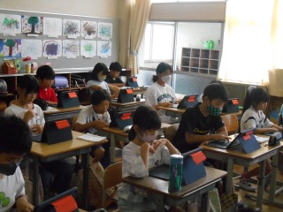 夏休みの思い出をタブレットへ入力しながら、まとめていました。