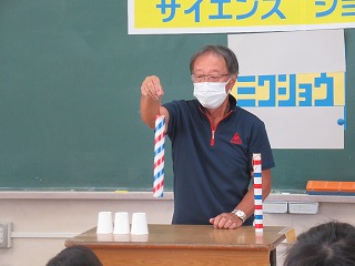 本日、三田先生を講師にお迎えして、サイエンスショーを3・4年生の教室で行っていただきます。子どもたちは、身を乗り出して、話を聞いていました。理科好きな子が多くなるとうれしいです。
