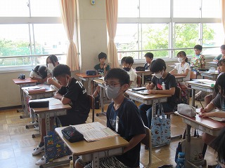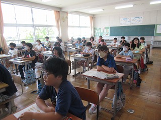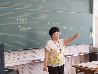 5年2組では、音楽の授業が行われていました。みんな真剣に先生の話を聞いていました。
