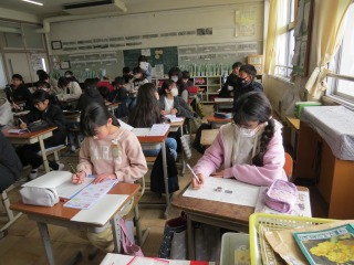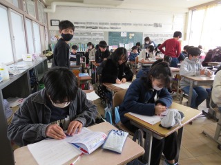 1年間の復習を、プリントを使って学習していました。わからないことは、互いに学び合いをしながら進めていました。