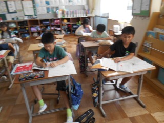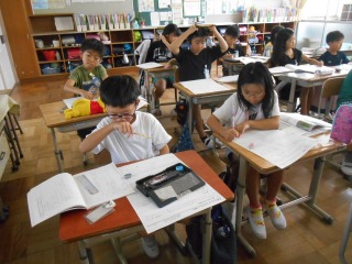 社会で学習したさまざまな仕事について調べ、プリントにまとめていました。