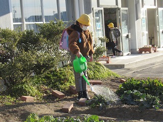 畑の水やりを行ってくれていました。植物も喜んでいますね。