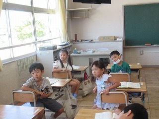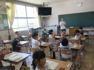 1年2組では、国語の教科書の音読を行っていました。一人で堂々と上手に読んでいました。子どもたちは、読んでいる子の方に体を向け、聞いていました。