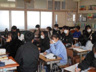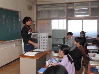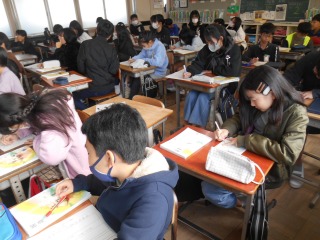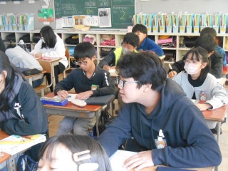 二字熟語のつくりについて学習していました。二文字が「~を・・・」、「~に・・・」の関係になる熟語などを頭をひねりながら一緒に考えました。