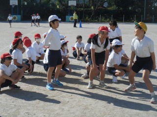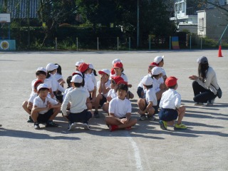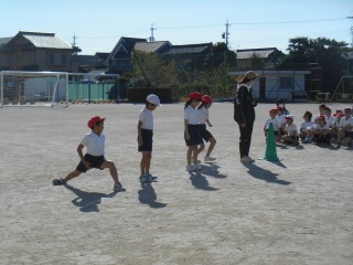 トラックを半周し、スタートの練習をしていました。待っている子は、応援しながら見学をしていました。今日は涼しい日となりましたので、走りやすい日です。