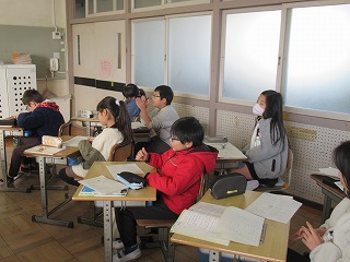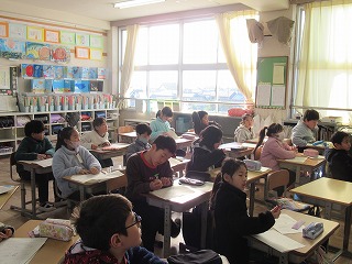 3年1組は学活の時間でした。宿題の国語のプリントの答え合わせをしていました。似ている表現でも、この言葉は大切というポイントを確認して答え合わせをしていました。