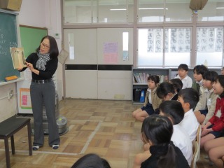 美和図書館読み聞かせボランティア「ぐーちょきぱー」の方による読み聞かせをしていただきました。お話の雰囲気を、読み手がさらに膨らませる読み聞かせでした。