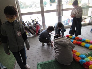 4年生の子が、青空卒業式に向けて、アーチの花を確認してくれていました。感動的な会にしたいですね。