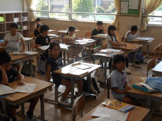 課題を提出していました。並んで順番に机の上へ置いていました。