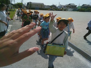 今日は、2回目の町探検へ出かけました。ボランティアの保護者の方4名と出かけました。今日は、八剣社、木田駅方面へ向かいます。安全に、いってらっしゃい!
