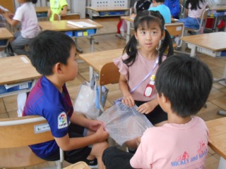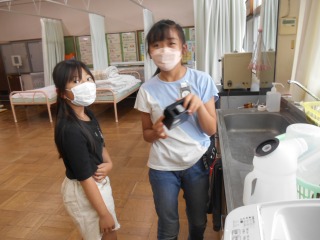 雨降りの今日、2時間目の休み時間に、いくつかの委員会が活動していました。ぷちぷちの空気を抜いたり、手洗い場の石鹸を確認したり、来週の企画について相談していました。