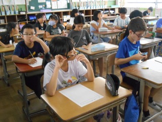 小数の単元を振り返り、頑張ったこと、わかったこと、これから取り組んでいきたいことを思い出しながら書いていました。