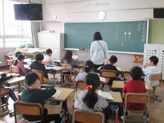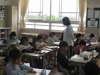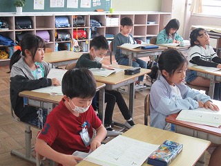 2年1組は国語の時間でした。教科書の音読では、漢字の読み方を声を合わせて読んでいました。
