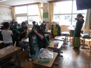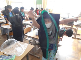 ミワリンピックで使用する「はっぴ」を着てみました。少しずつ準備が進んでいます。