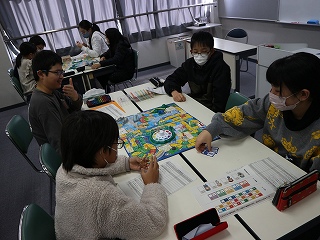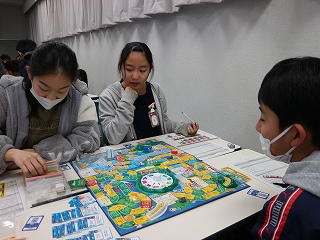金融業の方を講師で迎え、投資を通してSDGsについて学ぶ授業を行いました。いただいた人生ゲームを使って、この後詳しく学びます。