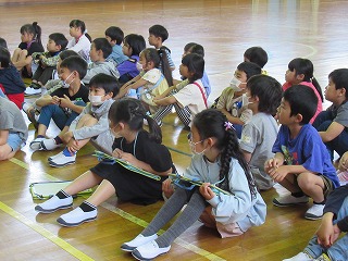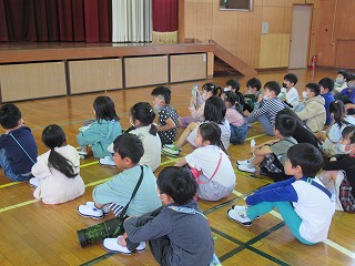 2年生が、1年生のために「1年生と仲良くなる会」を開いてくれました。まずは、体育館で全体会です。その後、学校たんけんに出かけます。2年生のお兄さん、お姉さん、優しく案内してあげてくださいね。