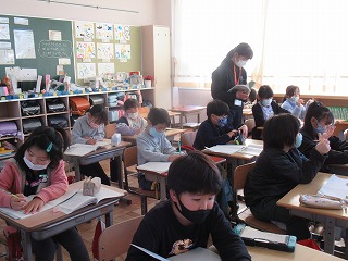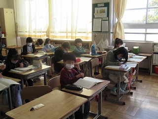 2年1組が国語の授業を行っていました。ノートに自分の言葉で書き込む活動をしていました。