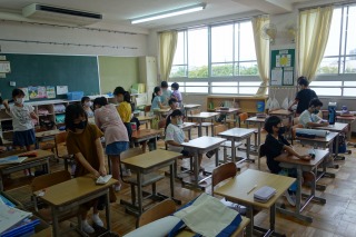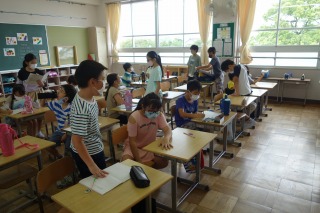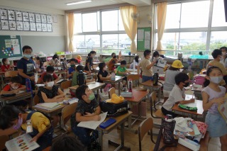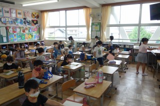久しぶりの朝の教室は、大いそがしです。みなさん、提出物がいつもより多いようでしたね。