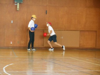 昨日の発表会で使った椅子を片付け、体育館でドッジボールをしていました。