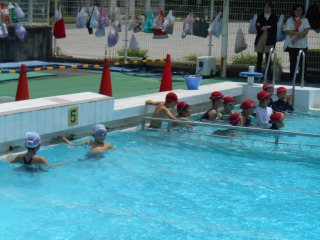 深いほうではクロールの練習、浅いほうでは水慣れや身近に距離で練習していました。