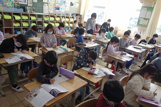 1年2組の道徳は、「七つのほし」の学習でした。美しい心について、みんなで考えました。